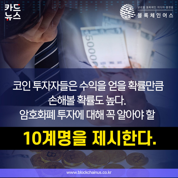 [블록체인어스 손정철 기자] 코인 투자자들은 수익을 얻을 확률만큼 손해볼 확률도 높다. 암호화폐 투자에 대해 꼭 알아야 할 10계명을 제시한다.