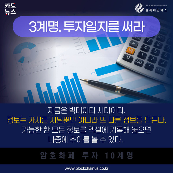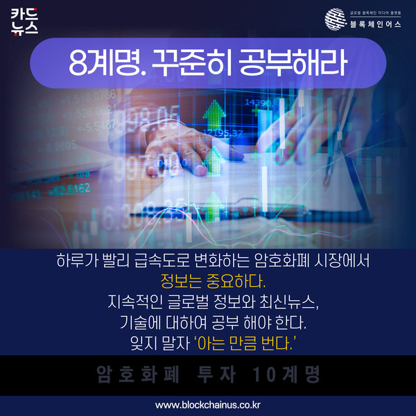 하루가 빨리 급속도로 변화하는 암호화폐 시장에서 정보는 중요하다. 지속적인 글로벌 정보와 최신뉴스, 기술에 대하여 공부 해야 한다. 잊지 말자 ‘아는 만큼 번다.’
