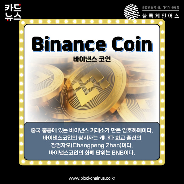 중국 홍콩에 있는 바이낸스 거래소가 만든 암호화폐이다. 바이낸스코인의 창시자는 캐나다 화교 출신의 창펑 자오(Changpeng Zhao)이다. 바이낸스코인의 화폐 단위는 BNB이다.