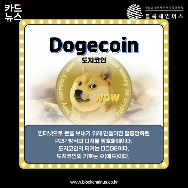 인터넷으로 돈을 보내기 위해 만들어진 탈중앙화된 P2P 방식의 디지털 암호화폐이다. 도지코인의 티커는 DOGE이다. 도지코인의 기호는 Ð(에드)이다.