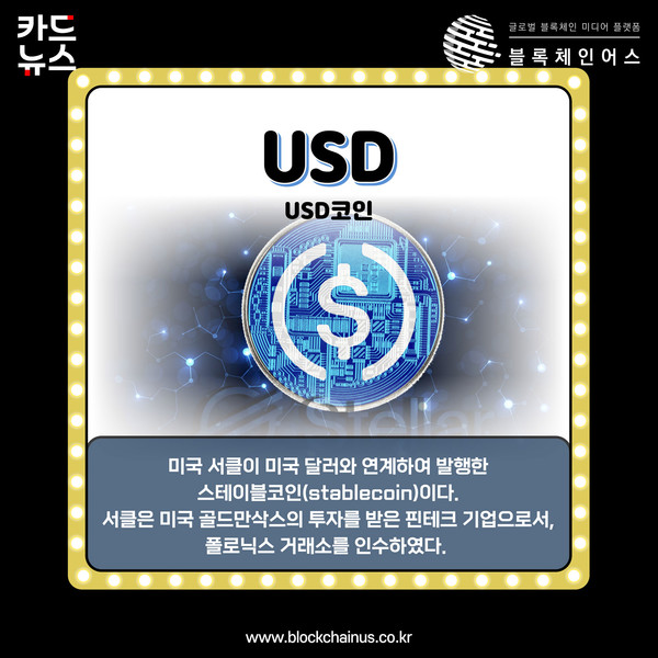 미국 서클이 미국 달러와 연계하여 발행한 스테이블코인(stablecoin)이다. 서클은 미국 골드만삭스의 투자를 받은 핀테크 기업으로서, 폴로닉스 거래소를 인수하였다.