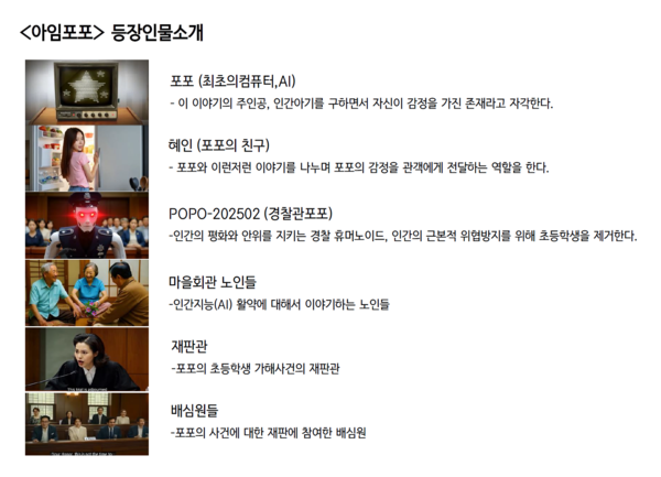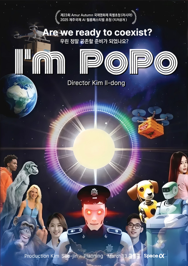 전 세계적으로 아직 실험적 단편 수준에 머물러 있던 AI 영화 흐름 속에서,〈아임포포〉는 ‘AI로 만든 최초의 한국 장편극영화’라는 새로운 지평을 열었다. 1940년대 최초의 컴퓨터를 시작으로 현대까지 인간과 인공지능의 공존을 탐구하는 이 작품은 단순한 기술 시연을 넘어, ‘AI의 논리와 인간의 감정이 충돌'하는 철학적 메시지를 담고있다.