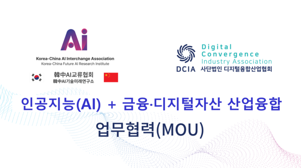 사단법인 디지털융합산업협회(Digital Convergence Industry Association, DCIA)와 한중AI교류협회(Korea China AI Interchange Association, KCAIA)가 공동으로 인공지능(AI) 산업과 금융 및 디지털자산 산업의 융합을 위한 업무협력식을 16일 체결했다.
