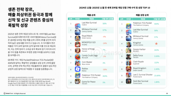 글로벌 마켓 인텔리전스 기업 센서타워(Sensor Tower)가 ‘2025년 전 세계 매출 상위 모바일 게임 라이브옵스 인사이트’ 리포트를 발표했다.