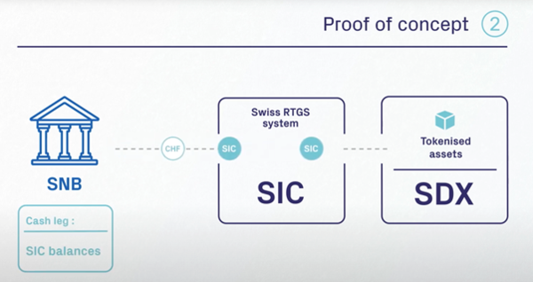지난 2020년 12월 3일 유럽 중앙은행 간의 정책 조정 및 국제 금융시장을 자문하는 국제 결제은행 BIS (Bank for International Settlements)의 이노베이션 허브(Innovation Hub)와 스위스의 중앙은 행인 SNB(Swiss National Bank)는 최근 CBDC 디지털 자산에 대한 DLT 기반의 확정(clearing) 및 결제(Settlement)하는 개념증명(Proof of Concept, PoC)하는 테스 팅을 성공적으로 마쳤다. 이 실험은 스위스 최대의 증권거래소인 SIX의 디지털 파트를 담당하고 있는 SDX 와 함께 진행하였는 데, 홀세일(Wholesale) B2B의 영역에서 스위스 중앙은행이 스위스 증권거래소와 함께 디지털 화폐를 이용하여 자산 및 증권이 어떻게 토크나이징되고 거래 (Trading) 및 확정 (Clearing) 그리고 어떻게 결제 (Settlement)를 할 것인지에 관한 실험이었 다. 스위스 SIC(Swiss Interbank Clearing System)도 협력하여 성공적으로 테스트를 마쳤다. 다음 단계는 이제 스위스의 시중 은행 등 시중 은행들과 한 걸음 더 진전된 테스트를 할 것이라고 밝혔다.